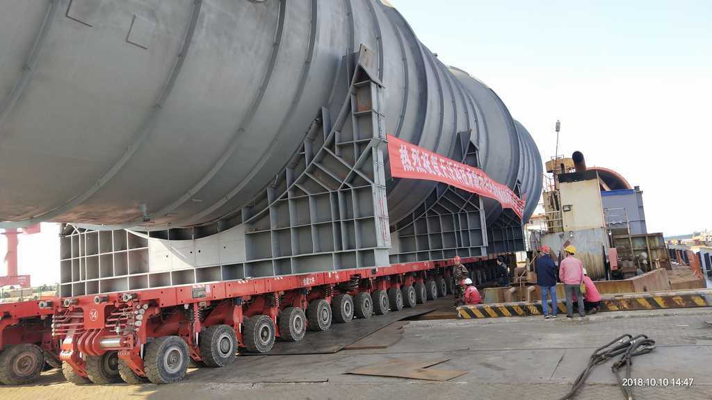 Self-Propelled Modular Transporters consist of modules with 4, 5, 6, and 8 axle lines. Load capacity differs per version, with a maximum of up to 44 tons per axle line. Each module can be fitted with its own engine and control (steering) system. The modules can be connected side-by-side and/or head-to-tail, to form large ‘platforms on wheels. SPMTs have the possibility of 360-degree steering of the wheels. This allows carrousel and sideway movements. Their deck height can hydraulically be adjusted by approximately 60 cm., enabling vertical lifting or lowering of the load. Due to their variety of combinations, SPMTs can lift and move virtually every heavy load. These trailers are mainly used for on-site transportation over limited distances.