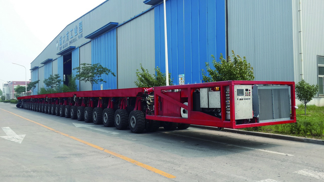 Self-propelled modular transporters (SPMT) are multi-axle trailers designed for the transportation of large and heavy cargoes. The SPMT are designed in modular construction and can be coupled side to side and end to end, or remote units can be operated as a single transporter via radio controls. Connected to the end of the SPMT is a power pack unit, which provides hydraulic power to the various functions of the SPMT. Fagioli owns SPMT with capacity up to 60 ton for each axle lines. The steering of the SPMT offers major advantages over other forms of conventional hydraulic trailers. This offers total flexibility of steering options with each wheel bogie able to swing through 260° (+130°). The position of each wheel is controlled electronically through the remote operations console and nine steering programs are available.